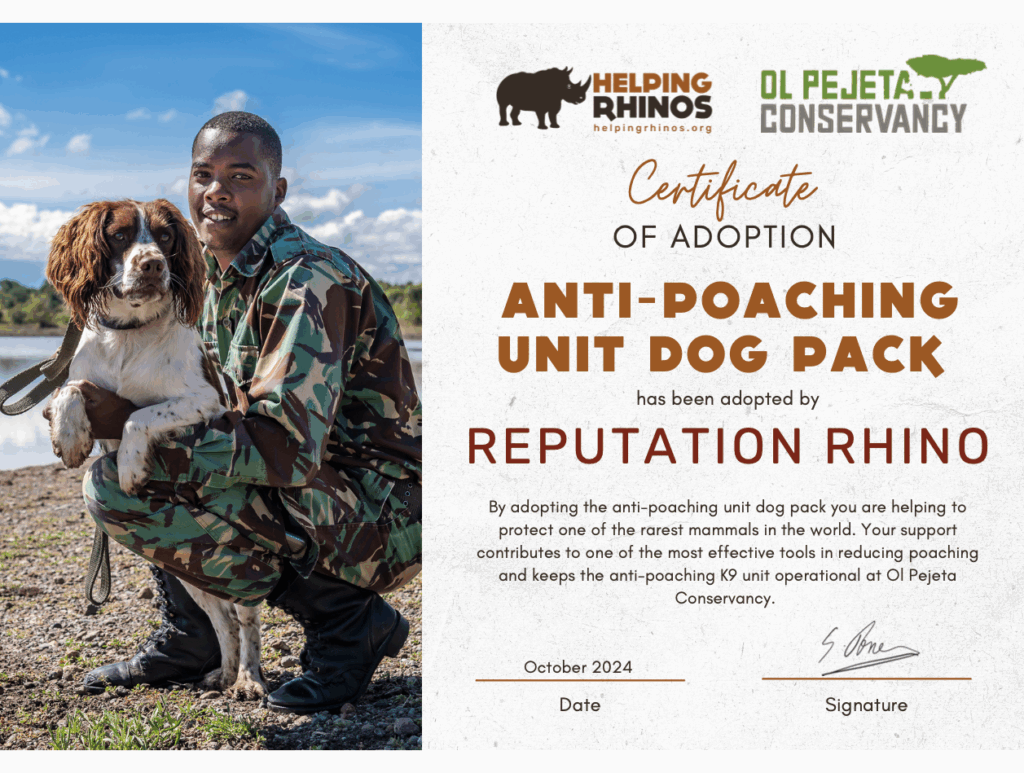 That same philosophy extends beyond our clients. Through our partnership with Helping Rhinos, we’ve proudly adopted rhinos, protection dogs, and anti-poaching teams who risk everything to defend some of the planet’s most endangered creatures.